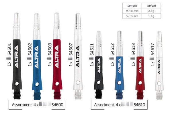 Aluminium shafts met een roterende top zijn ontwikkeld om bounce-outs op het bord te voorkomen. Bij nauwkeurige groeperingen in het bord draaien de aanrakende flights opzij, zodat de inkomende dart zijn vluchtbaan behoudt. Altra shafts hebben de standaard 2BA-schroefdraad en zijn verkrijgbaar in twee lengtes voor verschillende vliegeigenschappen.